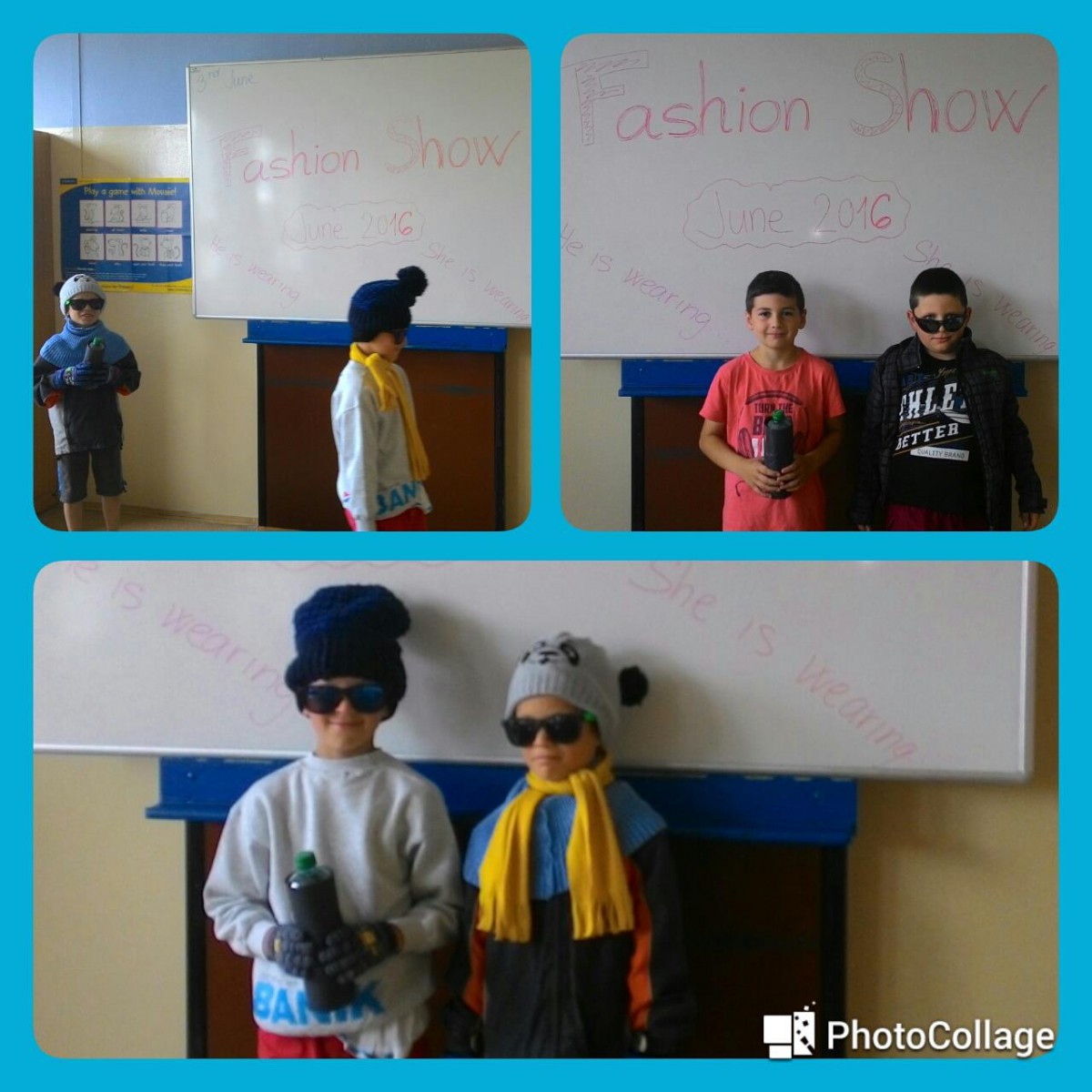 Žáci třetí třídy si v hodině anglického jazyka uspořádali módní přehlídku. Modelky a modelové se procházeli po mole, moderátoři anglicky popisovali předváděné oblečení. Perfektně si tak procvičili slovní zásobu z naší poslední lekce. Nechyběla samozřejmě ani hudba. Jako správní modelové a modelky nakonec zapózovali fotografovi.