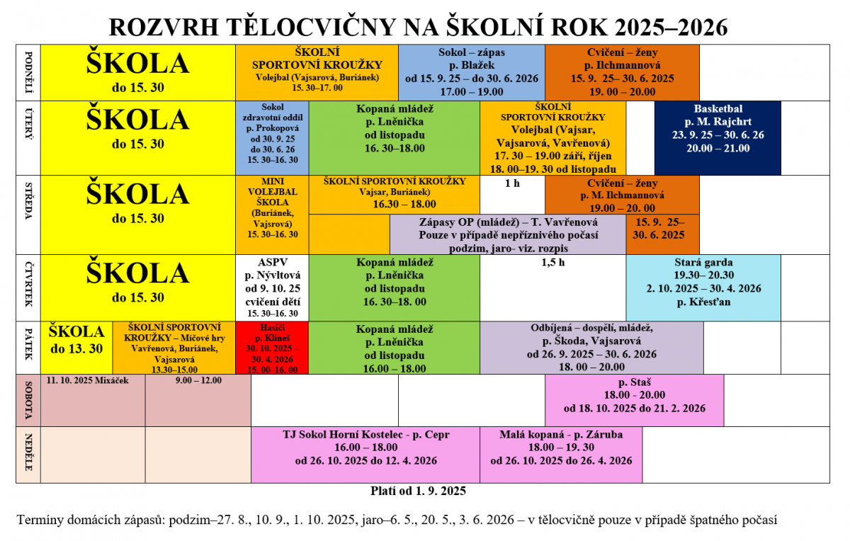 Rozvrh obsazení tělocvičny Dokument „Ceník pronájmu tělocvičny „ je k dispozici ke stažení v následujících formátech: Adobe PDF